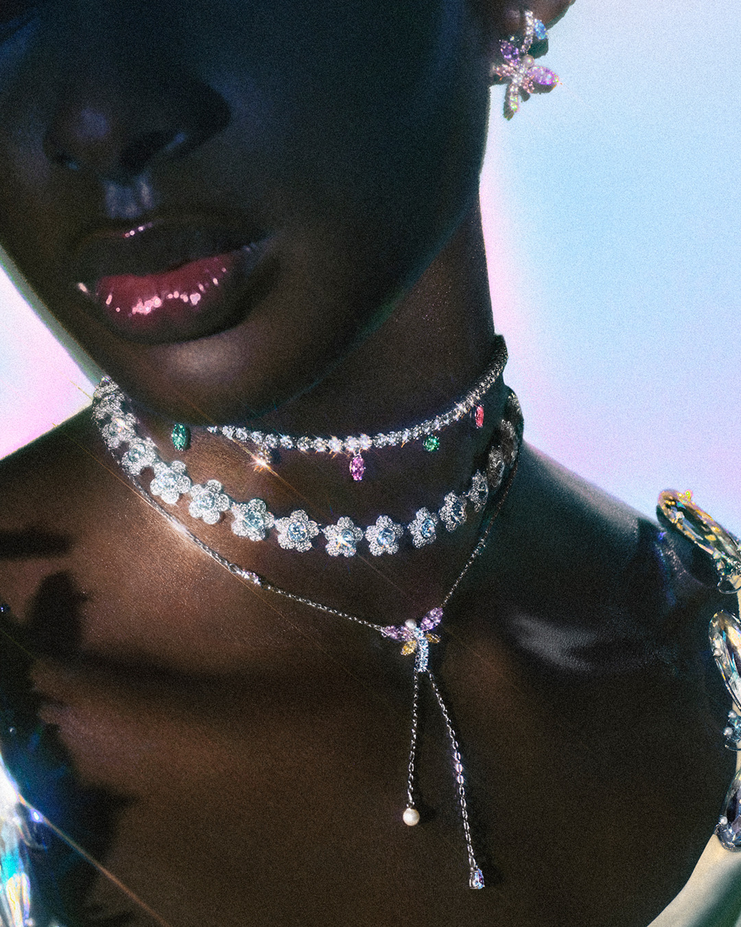 Giovanna Engelbert: “This capsule is a world Ariana and I created together. After last year’s collection, which was more timeless and classic, this one moves fully into her dreamy, magical universe. The fantasy‑garden imagery and the inspiration of the Aurora Borealis, with its shifting light and iridescent colors, are translated into the jewelry through crystal play, delicate pearls, and refined craftsmanship. It’s about emotion, transformation, and magic, grounded in Swarovski’s savoir‑faire — and it’s always such a joy to work with her.”