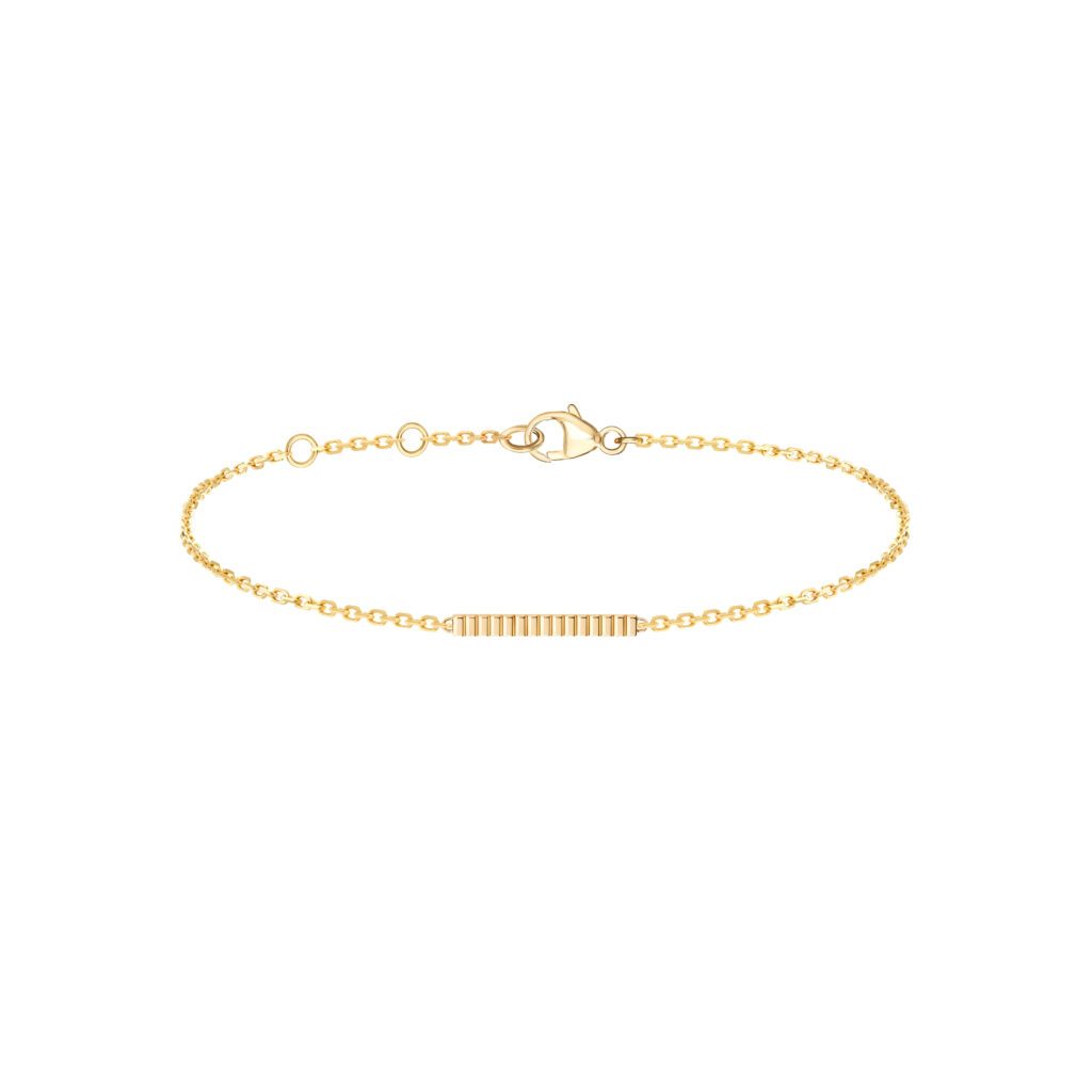 Having already appeared as rings and ear clips, the Grosgrain motif is now expanded with new creations that enrich the collection. The Maison unveils previously unseen pieces: a necklace, a bracelet, and delicate stud earrings, offered in yellow or white gold. Completing these additions is a graphic pair of stud earrings blending yellow gold, white gold, and diamonds for a harmonious finishing touch.