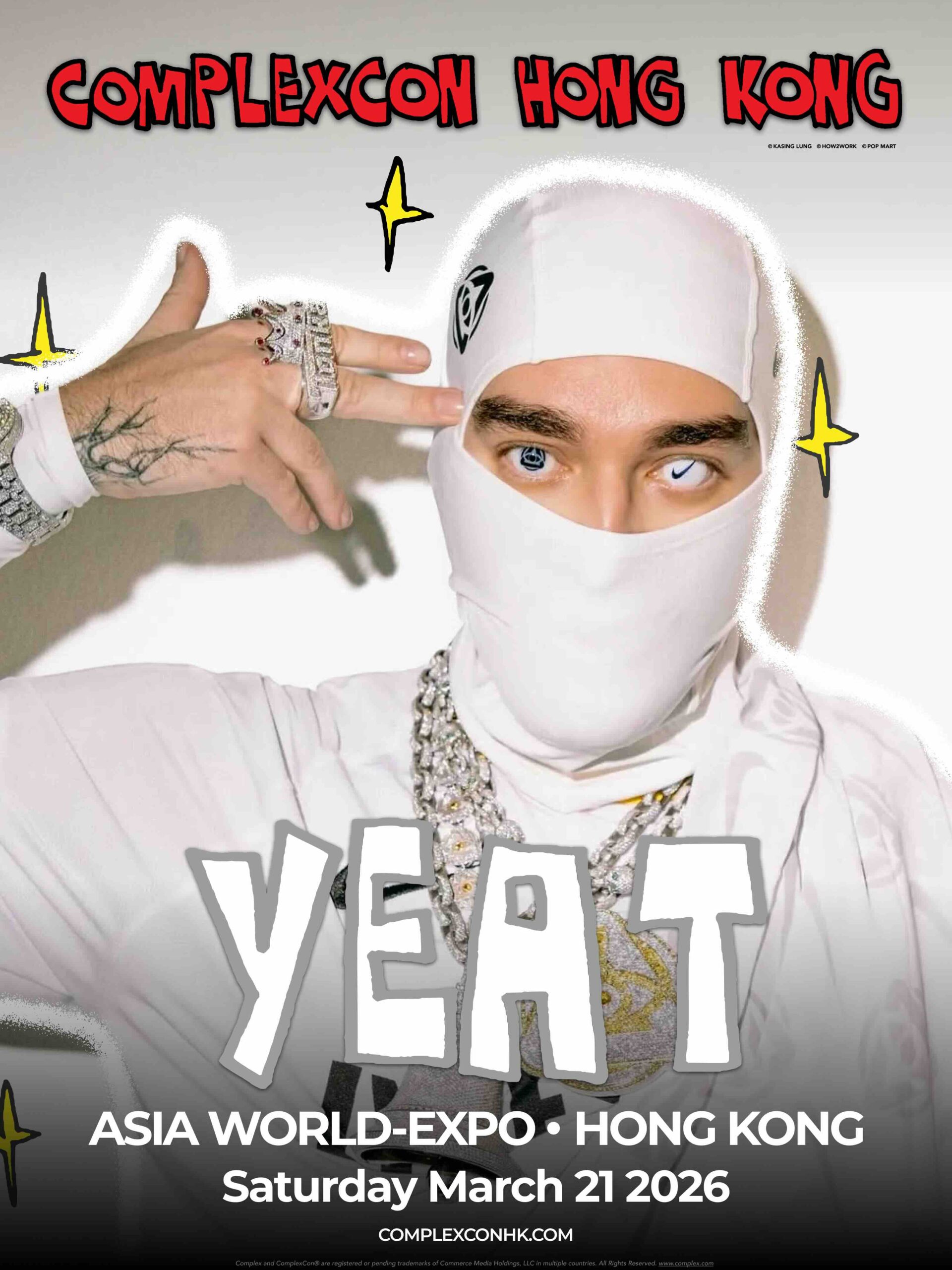 As the preeminent leading force of the new wave of hip hop, Yeat is set to deliver an era-defining performance in his Hong Kong debut and his first announced show in Asia with his viral hits and cult-favorite mixtapes. Fresh off an incredible viral headline show at ComplexCon Las Vegas in October 2025, Yeat arrives in Hong Kong as the rap game’s latest star. Known for his futuristic trap sound, heavy basslines, and hypnotic vocal style, Yeat’s breakthrough track in 2021, “Gët Busy”, paved the way for his 2023 collaboration with Drake on “IDGAF”, the Billboard Global 200 no.1 hit. Carving out a distinctive lane in modern hip-hop with his experimental lo-fi beats, eccentric persona, and rapidly growing fanbase, Yeat is riding high off his two highest charting albums to date – “2093” (debuting at #2 on the Billboard 200) and “LYFESTYLE” (debuting at #1 on the Billboard 200) / three headlining tours under his belt, five Billboard Top 10 Albums, and a staggering 16 billion global streams.