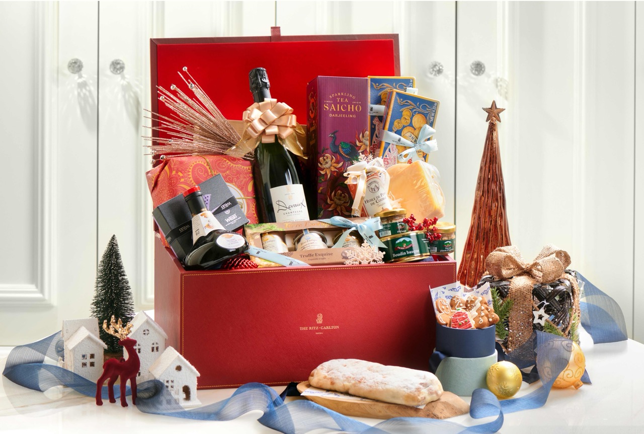 For an extra touch of festive luxury, the Panier Festif gourmet hamper is a thoughtfully curated selection of holiday treats. This luxurious basket features NV Louis Roederer Brut Champagne, aged balsamic vinegar, artisanal cheeses, Basque pork pâtés, Weiss chocolates, and festive baked goods such as The Ritz-Carlton’s signature stollen bread and Christmas cookies. Priced at MOP $2,988, the Panier Festif is available from November 25 to December 31, 2025, with a 48-hour pre-order requirement.