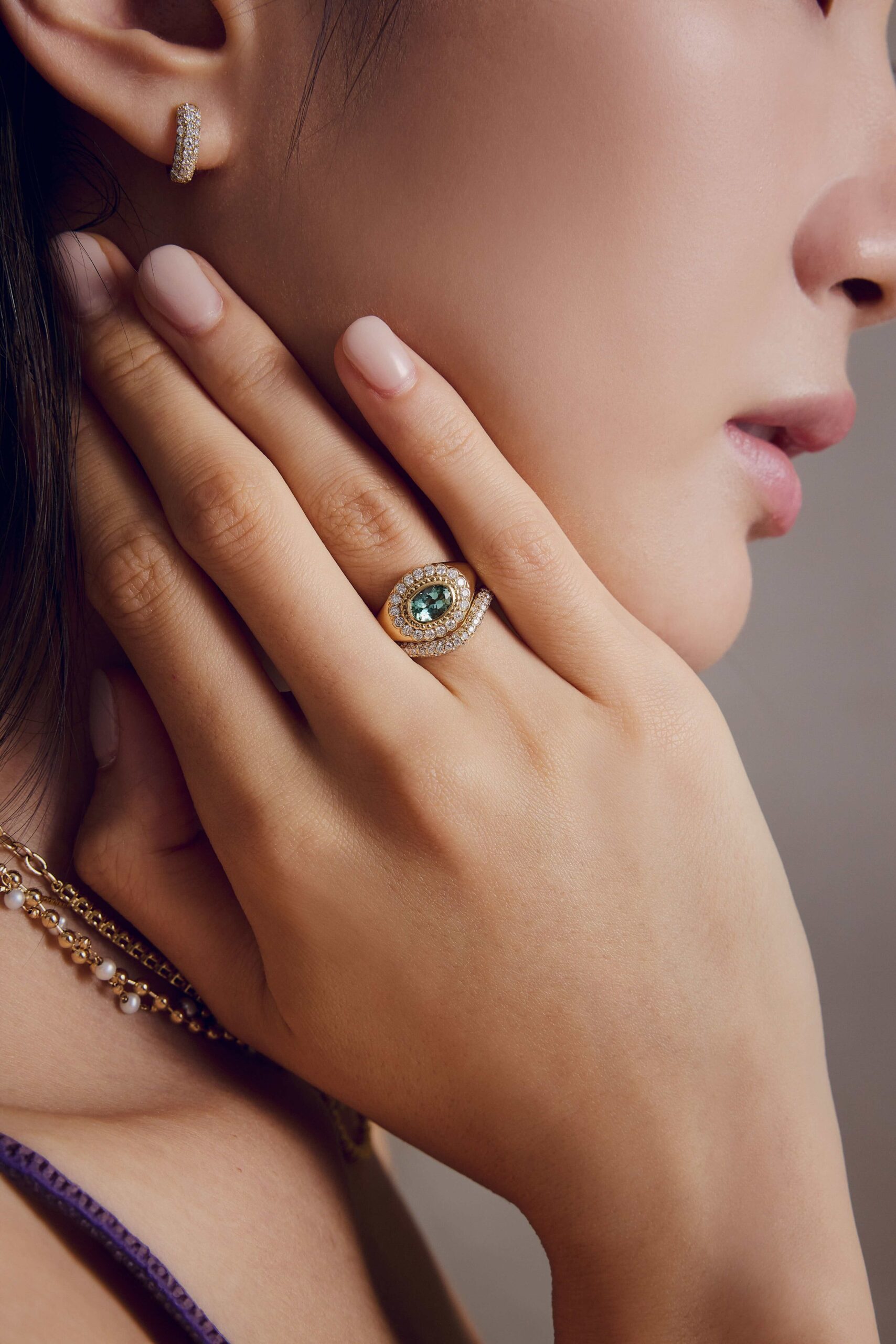 The Solenne Signet Collection features twelve rare gemstones, each reflecting the unique color of your aura. Every stone carries its own distinct energy, awaiting the wearer to personally embody its meaning: Diamond symbolizes eternality; Morganite speaks the language of romance; Aquamarine holds the essence of tranquility; Emerald represents vibrant vitality; Garnet brims with life’s vigor; Topaz pursues mental clarity; Citrine radiates warm joy; Pink Garnet blossoms with elegant grace; Green Tourmaline embodies nature’s harmony; Tanzanite carries the hope of the future; Amethyst harbors deep wisdom; Peridot bestows peaceful serenity; and Ruby burns with intense passion.