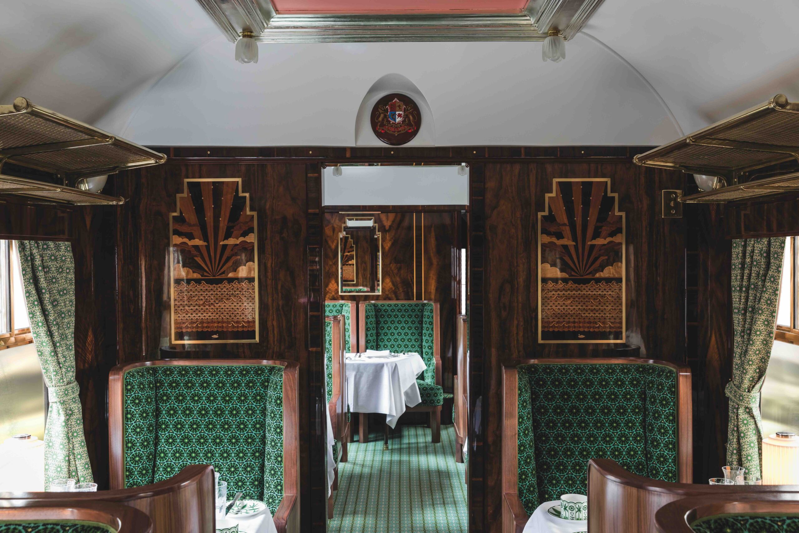 THE BRITISH PULLMAN, A BELMOND TRAIN, ENGLAND PRESENTS CELIA, A DAZZLING PRIVATE DINING AND EVENTS CARRIAGE DESIGNED BY BAZ LUHRMANN AND CATHERINE MARTIN