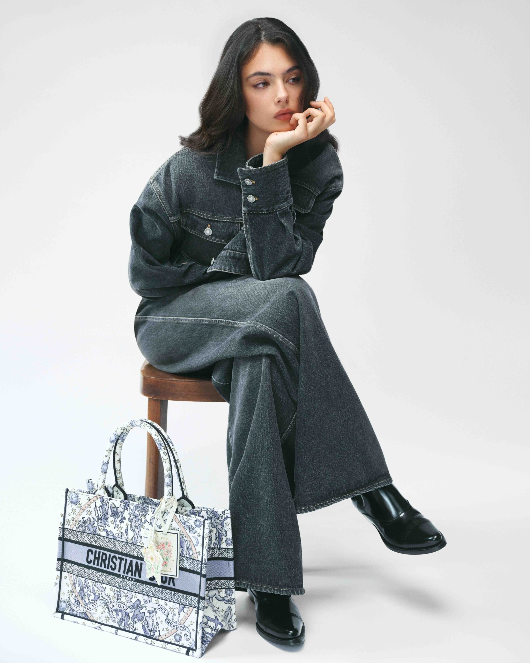 These three irresistible personalities have each chosen a Dior model customized to reflect their image and identity: Deva Cassel sports a version of the Dior Book Tote, embellished with the Night of Dreams motif and a travel tag representing her zodiac sign, Virgo.