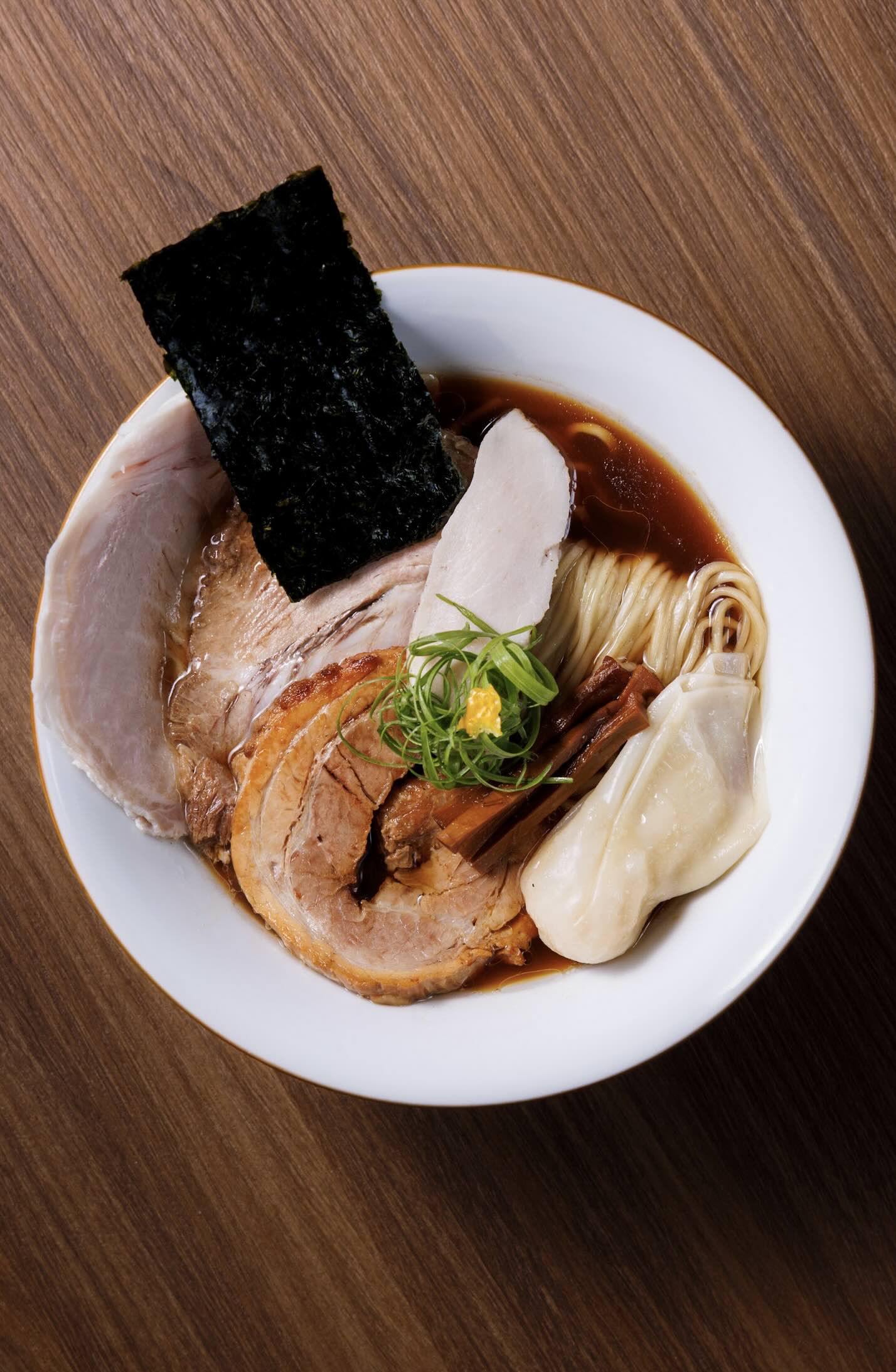 Each of the three meticulously crafted broths has its own character. Shoyu (soy sauce) is a blend of raw soy sauce and 11 select varieties of soy sauce, simmered at precise temperatures to unlock rich, full-bodied and layered flavours. A delicate balance of saltiness and soy aroma, White Shoyu (white soy sauce) is elevated with white truffle oil and black truffle paste for a lingering, sophisticated finish. Perfectly expressing the tanrei essence of light, crisp, clean flavours, the pure, simple seasoning of Shio (salt) highlights the natural taste of the premium ingredients.